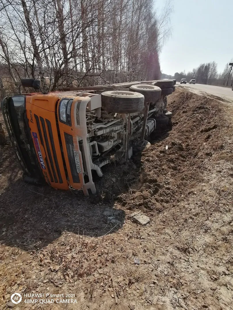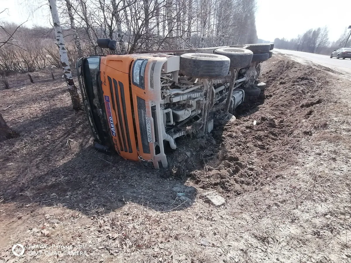 11 апреля на трассе Рязань - Скопин у деревни Романцево перевернулся самосвал с щебнем. Фото с места аварии появилось в группе "Рязань" Вконтакте.