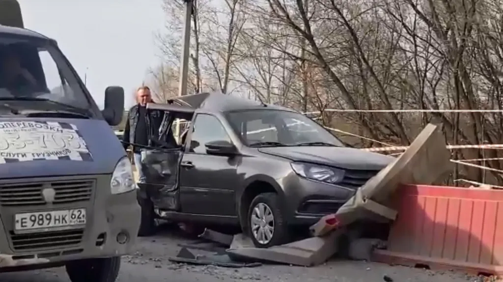12 апреля. 14:30. По мосту через Трубеж лениво двигаются машины. Одна полоса закрыта – там трудятся дорожные рабочие. Погожий весенний день.