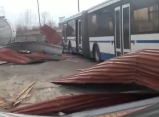 Жители Новомичуринска засняли на видео последствия урагана, который пронесся по Пронскому району в субботу, 17 апреля. Как сообщает Издательство "Пресса", мощный порыв ветра сорвал со стометрового ангара местного автотранспортного предприятия кровлю. Один из листов металла пробил крышу автобуса, а другой согнул громоотвод.