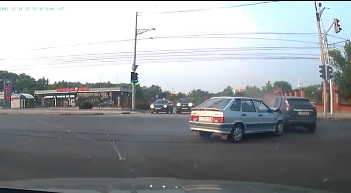 На видео видно, что иномарка выезжала с парковки торгового центра. В это время "четырнадцатая" направлялась по Московскому шоссе в сторону центра Рязани. В момент столкновения для водителя Ford горел зеленый свет.