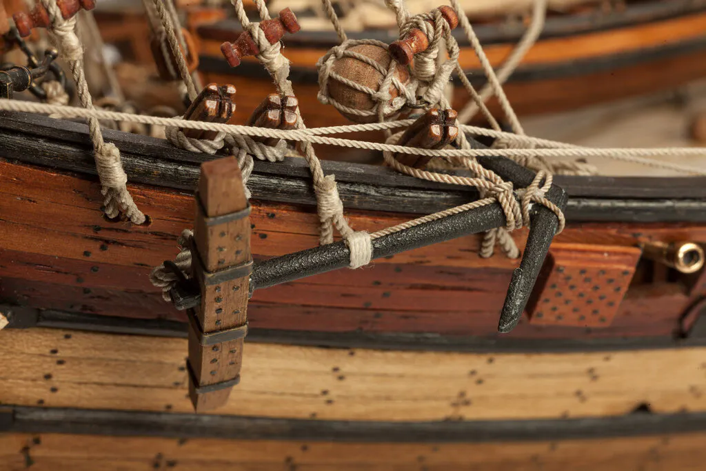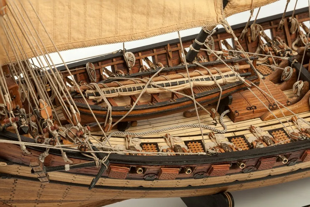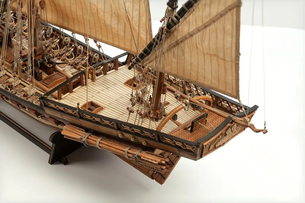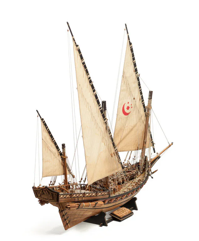 О корабле. Корабль - арабскую шебеку - я делал целых семь лет с перерывами. Сначала я просто приобрёл из Италии набор для этого кораблика, но очень быстро качество многих деталей меня не удовлетворило. И началась эпопея на семь лет. Что только не мешало мне! И несоответствие масштабов деталек, и то, что мне вздумалось сделать пушки к кораблю, и поиск материалов, и тех, кто мог бы мне помочь... Я даже с рязанским муллой связывался!