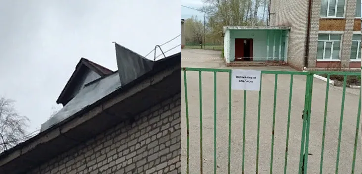 - Спасибо за летающую крышу. Видимо, директор получил по шапке, и сегодня случилось чудо. После школы, когда все дети закончили учится и ушли на 10 дней, натянули ленточку и повесили рядом таблички "Опасно". И калитку закрыли, чтобы дети обходили опасное место по кругу.