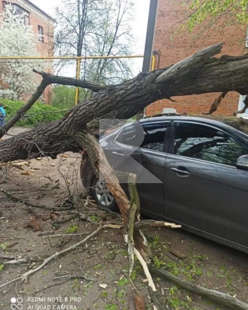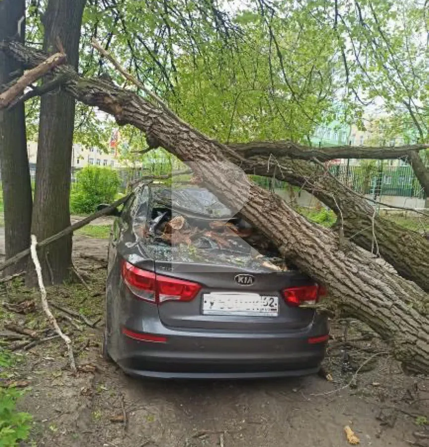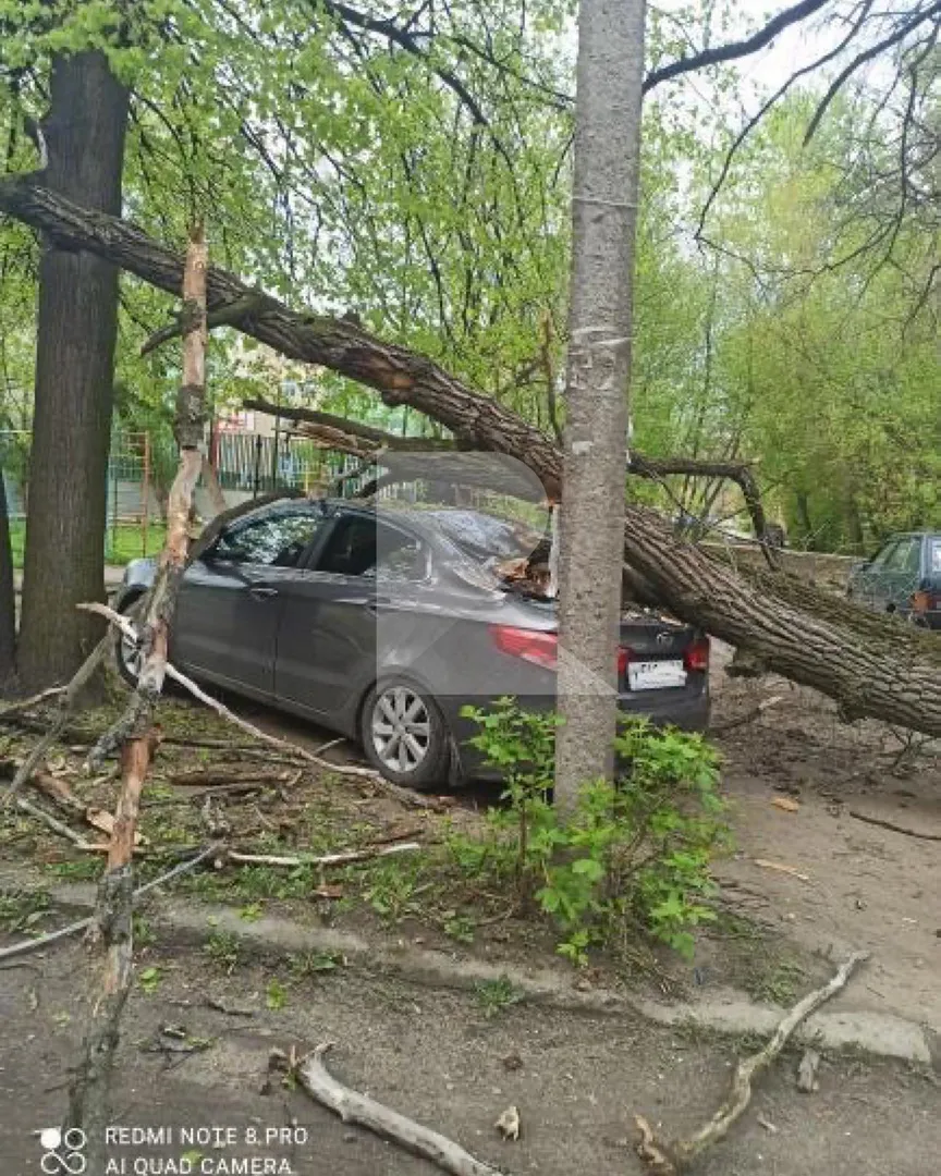 Заднее стекло всмятку: в Рязани на автомобиль упало дерево