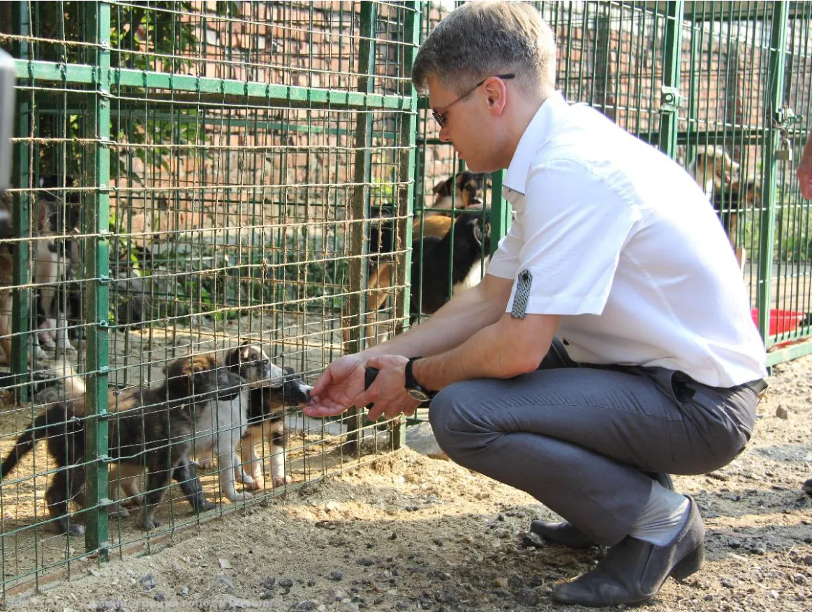Мэр рассказал, что не собирался брать собаку, но когда увидел животных, не смог устоять. Олег Булеков отдал щенка своим родителям, у которых уже есть одна собака.