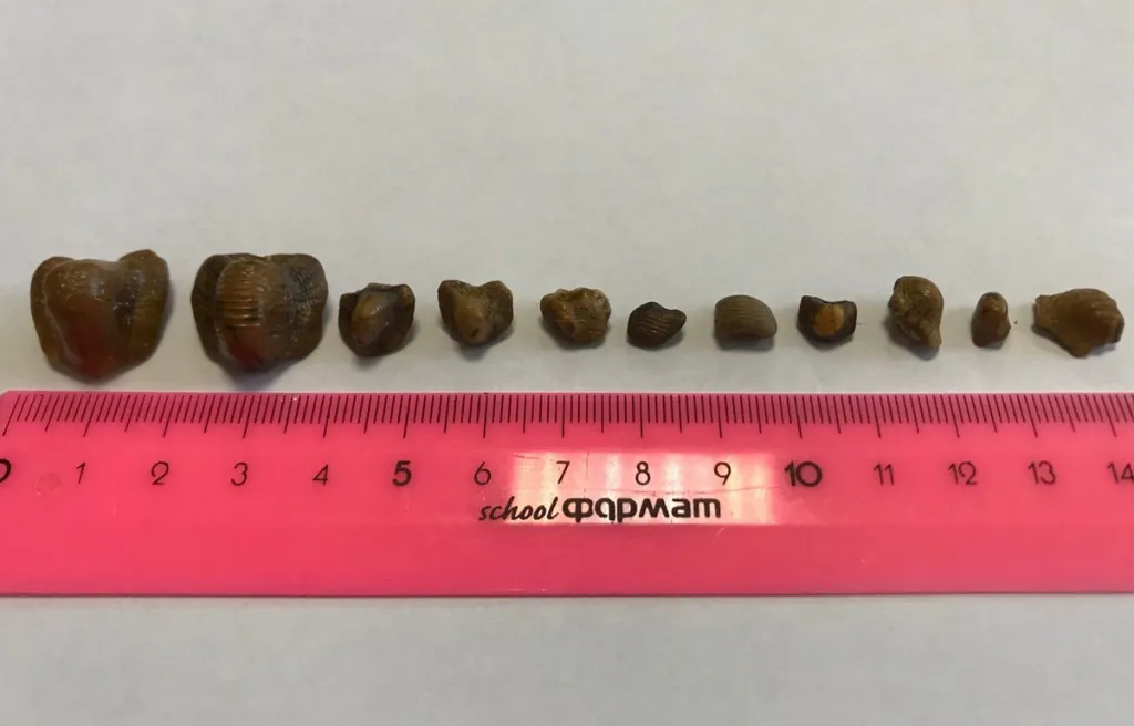 Помимо зубов акул-птиходусов исследователи нашли множество зубов разнообразных морских ящеров - плио- и плезиозавров, и даже мозазавров а также летающих птерозавров. Малый Пролом - единственное место в Рязанской области, где найдены остатки последних двух групп. Кроме того, наши учёные вместе с иностранными коллегами уточнили возраст замечательного карьера - он оказался моложе, чем считалось прежде: