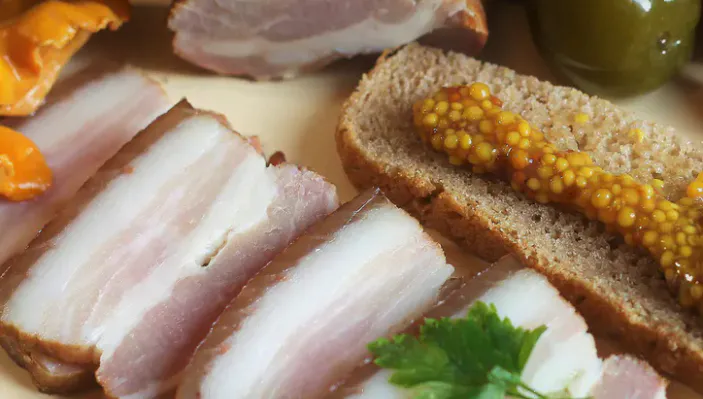 - Прежде чем приступить к приготовлению, промыть грудинку и просушить ее бумажным полотенцем.