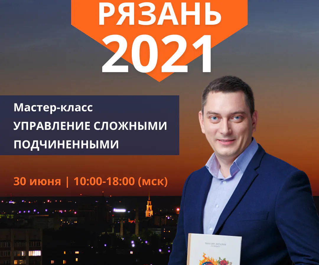 Чтобы понять, как справиться с такими коллегами, 30 июня в Рязани состоится мастер-класс “Управление сложными подчиненными”. Мероприятие проведет Максим Батырев - обладатель премий «Коммерческий директор года», «Менеджер года», «Бизнес-автор года» и «Бизнес-спикер года». Автор супер-бестселлеров «45 татуировок менеджера», «45 татуировок продавана» и «45 татуировок личности».