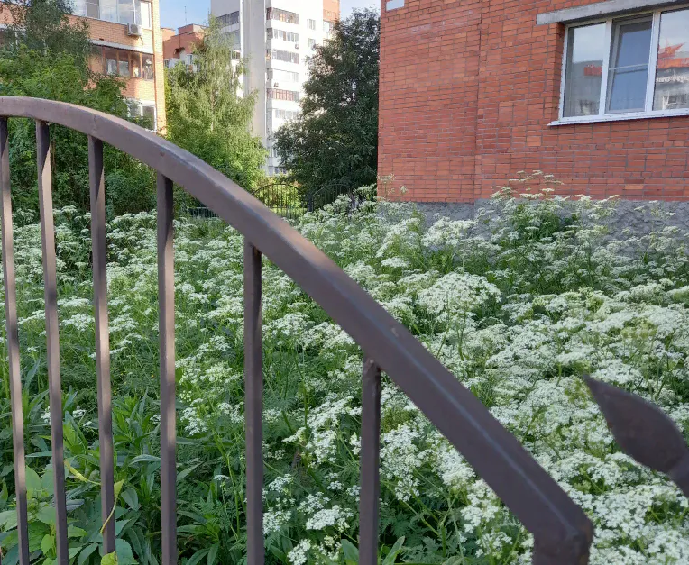 - По адресу Новаторов, 2к3, растет и цветет борщевик прямо под окнами жильцов дома. Растения высотой с человеческий рост. 12-этажный дом за добротной изгородью. Жильцы не обращают внимания на опасное растение, - пишет Галина В.