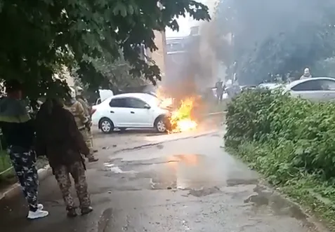 Сегодня утром, 10 июня, на улице Вокзальной сгорел автомобиль. Видео горящей машины прислал нам очевидец.