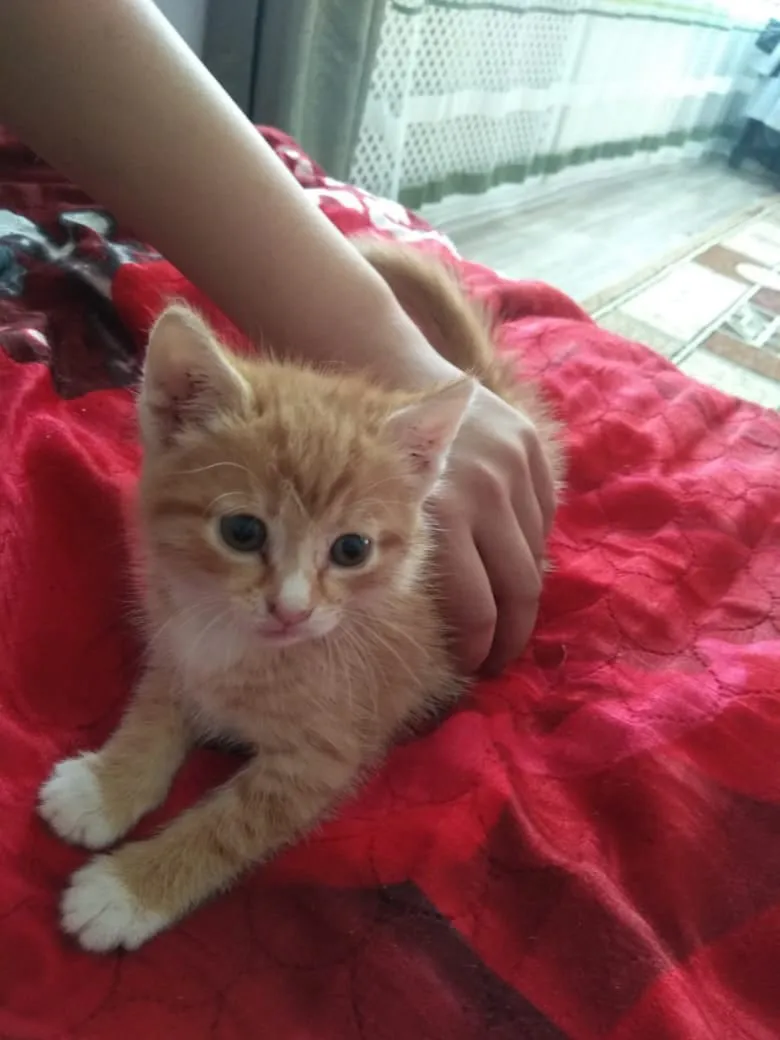 Рыжульку бросили на пустыре. На нее наткнулась девушка, которая выгуливала собаку - пес принес котенка в зубах прямо к хозяйке. Рыжулька приучена к лотку. Со стерилизацией помогут.