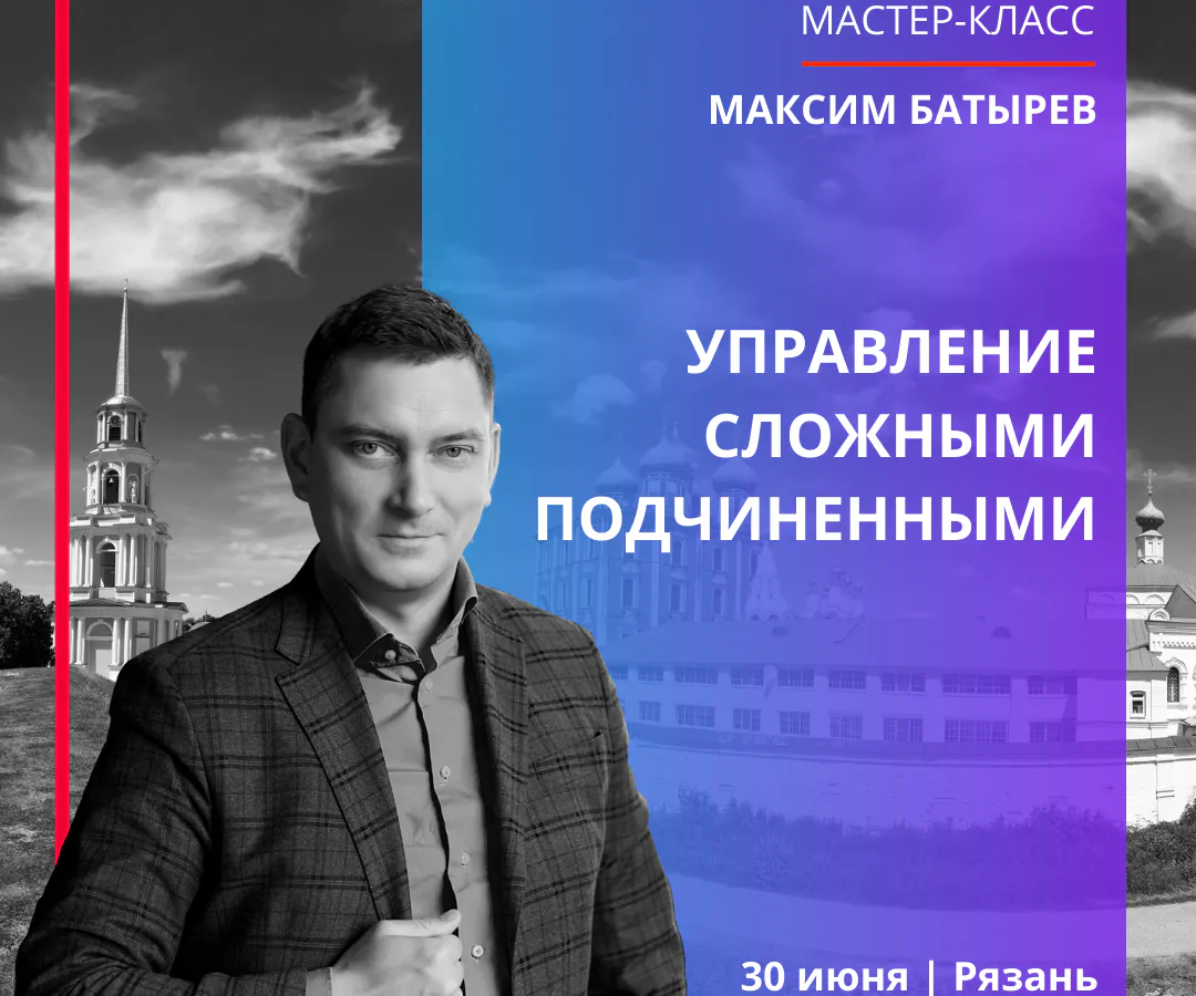 30 июня в Рязани мастер-класс Максима Батырева “Управление сложными подчиненными”.