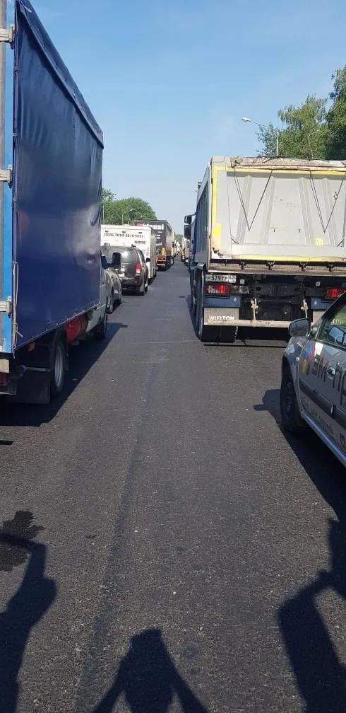 Сотни автомобилей - от легковых до фур выстроились в ряд, создавая бесконечность. А где-то там, на другом конце пробки трудятся дорожные рабочие…