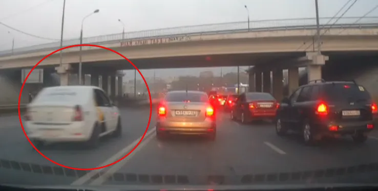 В соцсети попало видео, где таксист, чтобы объехать пробку, пролетел по встречной полосе. Водитель, вероятно, “родился в рубашке”. По словам очевидцев, мужчина на белом “Рено” пролетел, едва не врезавшись во встречный автомобиль.