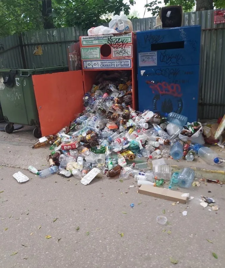 В рубрику “Народный контроль” пришла  фотография от читательницы - на улице Новаторов “лопнул” контейнер для сбора пластика. А из-за чего? От переизбытка бутылок!