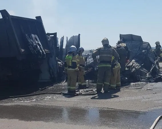 Жуткая авария под Рязанью: фура влетела в машину прикрытия, вспыхнул пожар