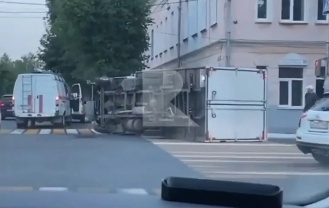 Работает МЧС: в центре Рязани перевернулся грузовик