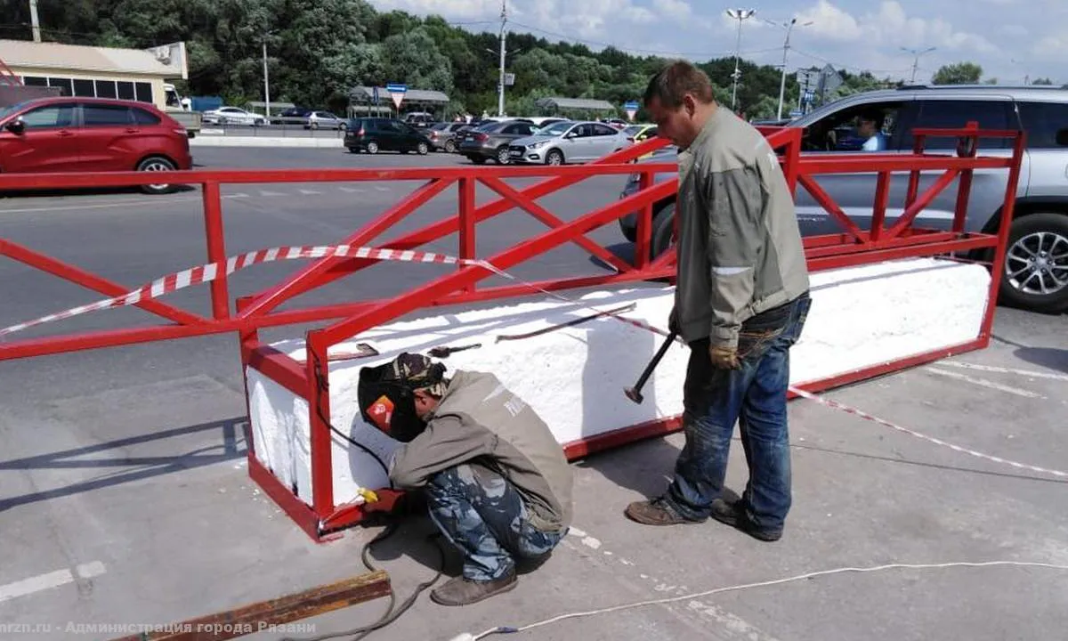 Администрация торгового центра выделила средства на приобретение бетонных блоков и металла для изготовления откатных шлагбаумов. Сегодня, 21 июля, уже начался монтаж.