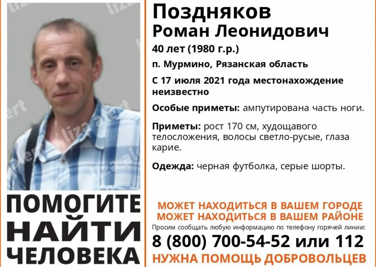 Приметы Романа: рост 170 сантиметров, худощав, светло-русые волосы, карие глаза, ампутирована часть ноги.