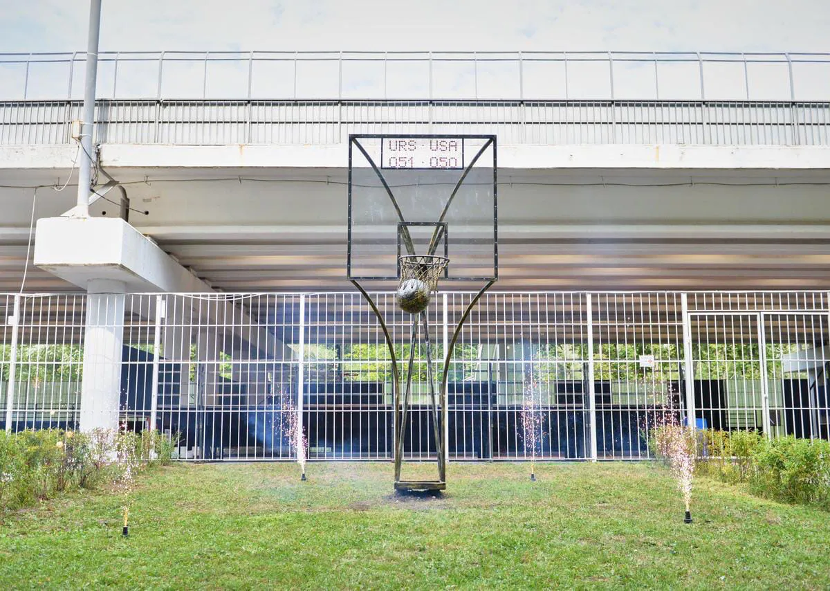 Баскетбольное кольцо с мячом внутри - отображает реальные события мирового спорта. В финале баскетбольного турнира Олимпийских игр 1972 года команда СССР на последних секундах забила решающий мяч и выиграла со счетом 51:50 у команды США, - поясняют авторы поста.