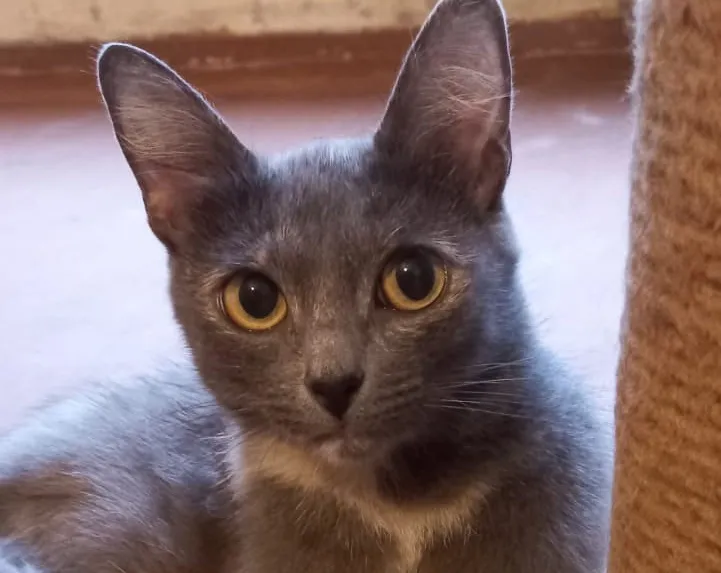 4 месяца. И как такое чудо можно было оставить на улице? Только посмотрите в эти огромные глаза. Хлоя мурлыкает очень громко, как трактор. Любит ластиться, сидеть рядом с человеком. Обладательница шелковистой красивой шерстки.