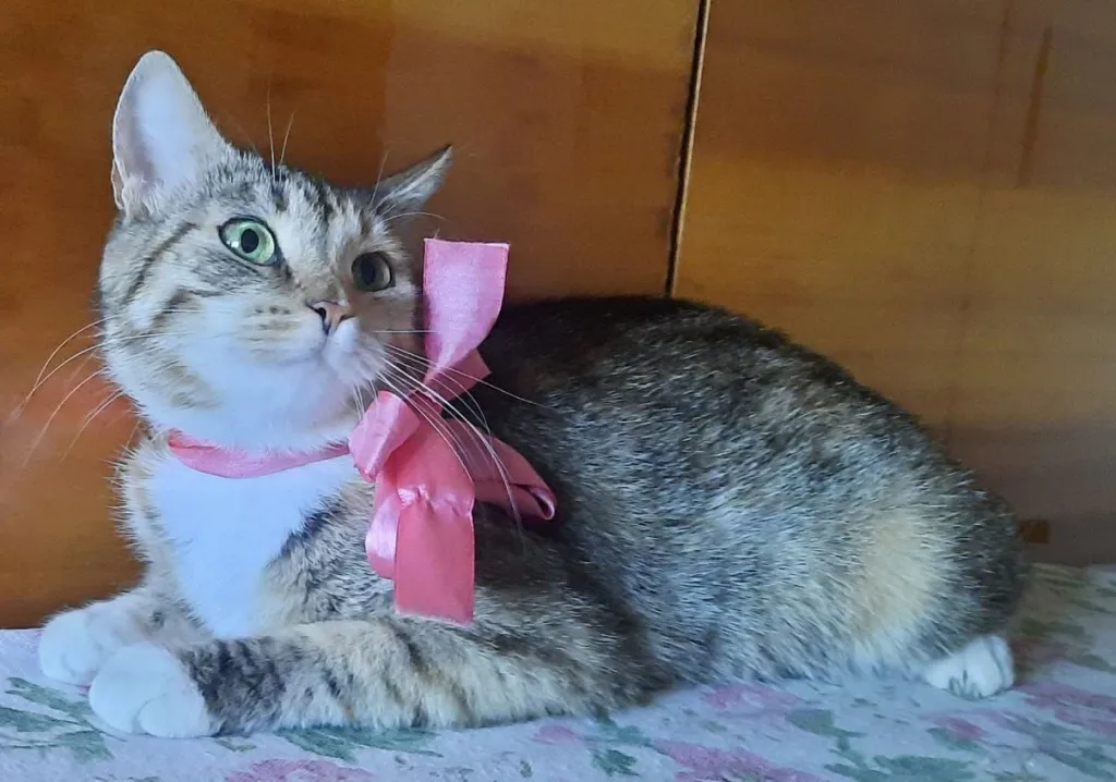 Два года. Стерилизована. Эта зеленоглазая красавица точно будет приносить счастье - ведь она трехцветная! К тому же кошка очень ласковая, тянется к людям, любит помурлыкать. Только представьте, как такое чудо сопит у вас под боком.