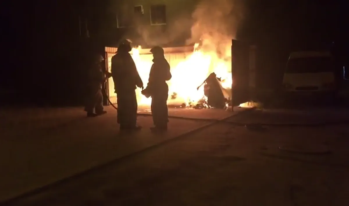 На записи видно, что на месте пожара работают трое сотрудников МЧС. Они быстро потушили пожар.