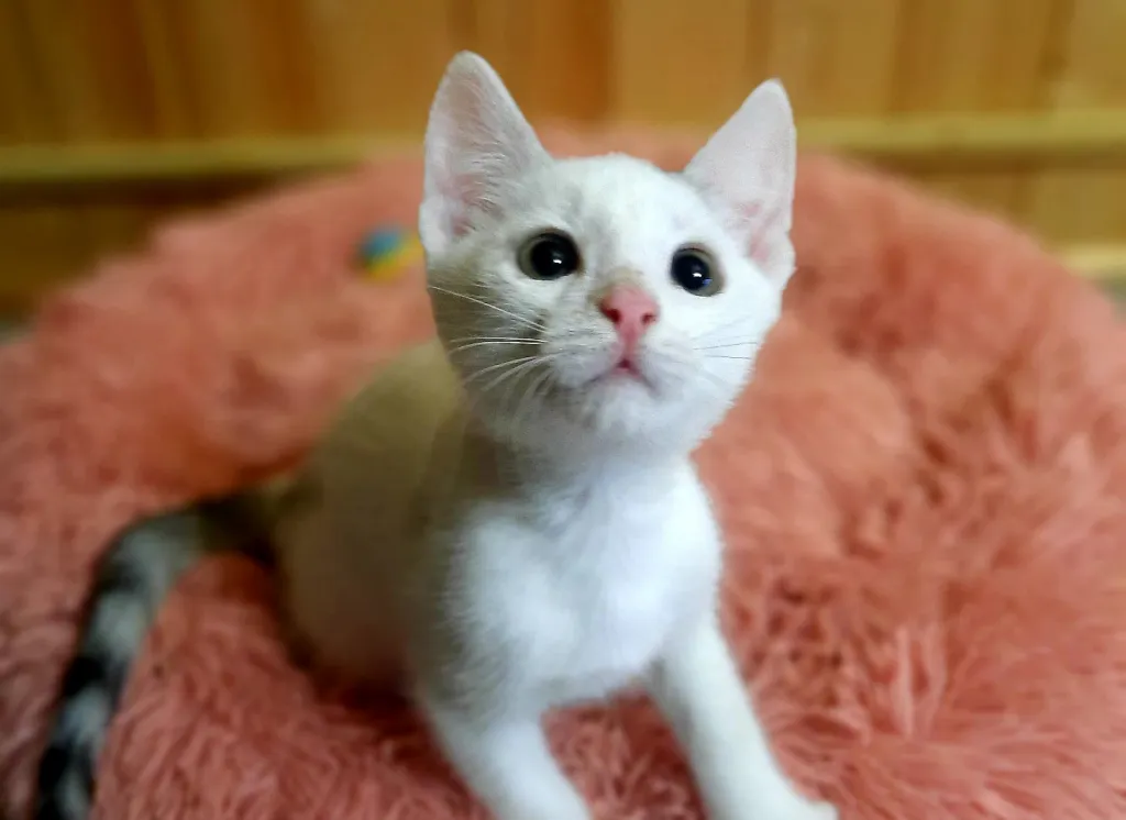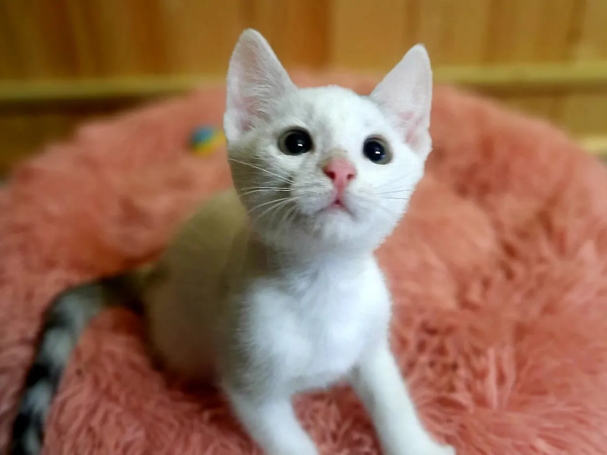 2 месяца. Совсем кроха, но уже узнал, что такое холодный и недружелюбный мир. Может, именно вы подарите ему ласку и заботу? Снежок здоров, общителен, жизнерадостен, обработан от паразитов.