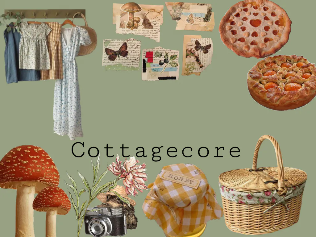 Сottagecore (коттеджкор) - эстетика деревенской жизни, единения с природой и спокойной размеренной жизни. Атрибуты: свободная или домашняя одежда, теплые вязанные вещи, самодельные вышивки, клетчатый принт, кружевные блузки свободного кроя, корзинки, выпечка, красивая посуда, баночки с заготовками. Эта эстетика в отличии от других имеет еще и свою философию. Люди, относящие себя к этому направлению, не против вести размеренный стиль жизни, далекий от современности с ее бешеным прогрессом. Это любовь к традициям и получения удовольствия от жизни. Люди, которые любят эту эстетику, часто переезжают за город.