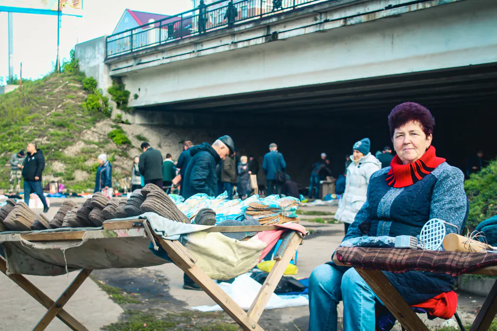 На блошином рынке прилавки пестрят, но люди очень похожи и объединены одной общей проблемой – они находятся за чертой бедности. Они считают копейки, чтобы накопить на обед, некоторые оказались на грани бомжевания. Приходится продавать накопленное за долгие годы жизни: старые потрепанные книги, пленочные кассеты, советские игрушки, всеми забытые виниловые пластинки, ржавые инструменты, поломанную технику, поношенную одежду... Здесь можно даже найти швейную машинку «Зингер» – когда-то о ней мечтали многие советские женщины.