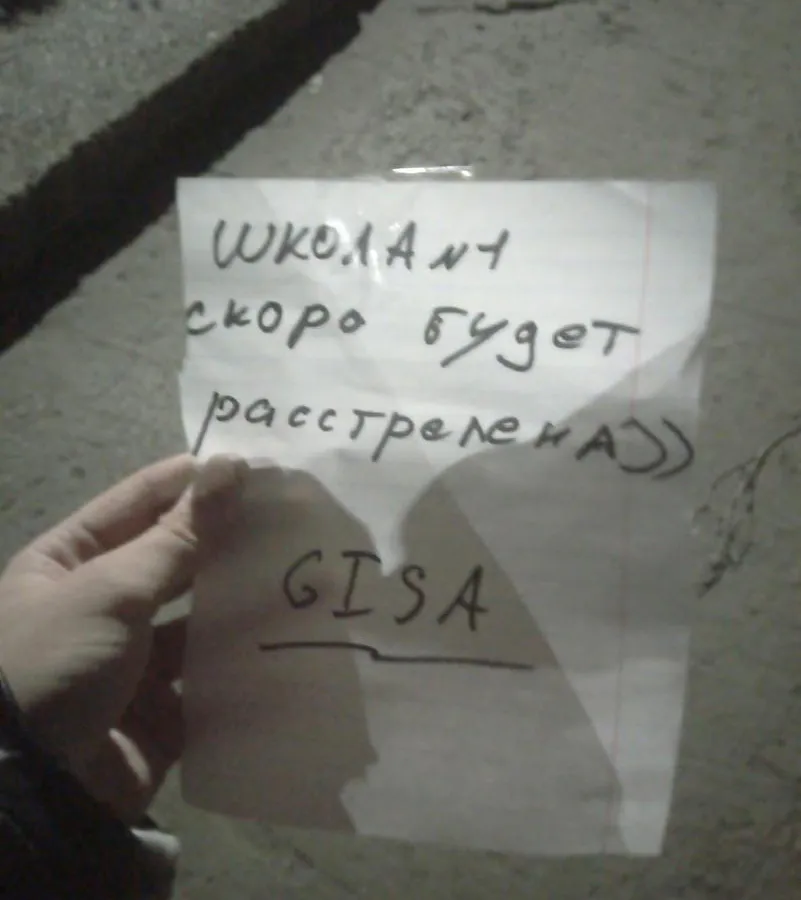 Записки с угрозами расстрела появились на подъезде одного из ближайших со школой домов еще вечером 1 октября. 2 октября они разлетелись по всем социальным сетям. Люди недоумевают: шутка ли это или реальная угроза?