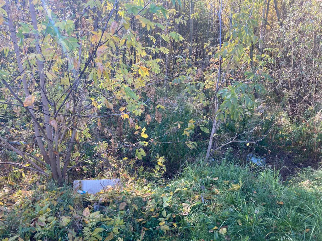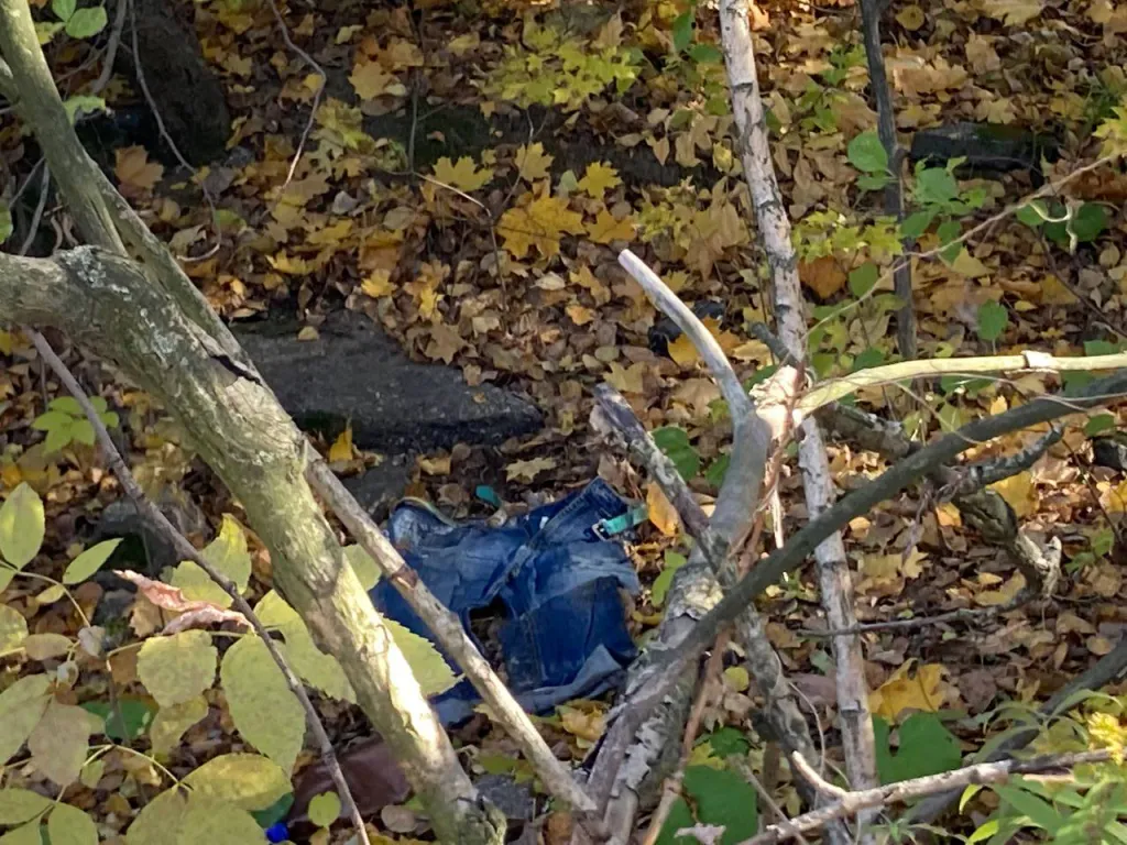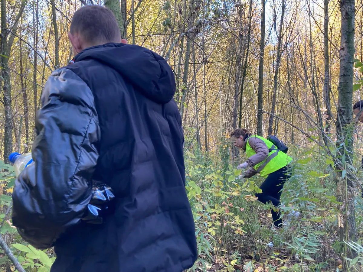 Спускаемся в лесополосу, сразу натыкаемся на женскую сумку. Поисковики фотографируют, ставят отметку на карте. Движемся дальше, продираясь сквозь ветки и траву. Ноги мгновенно становятся мокрыми – в лесу очень влажно, пахнет прелой листвой.