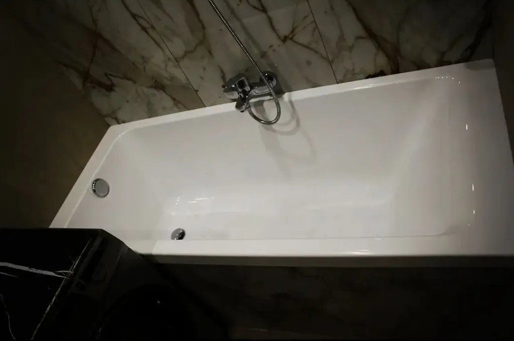 Установка ванны - ответственный этап, на который также следует обратить внимание. Место соприкосновения ванны со стеной заделывают герметиком. Важный момент: прежде чем приступить к работе, в ванну следует набрать воду. Затем слить, когда материал застынет. Так слой герметика получается эластичным и не отходит от края ванны, когда она проседает под весом воды.