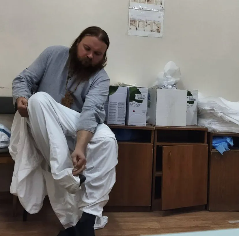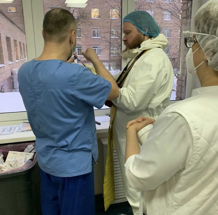 - При посещении красной зоны мы надеваем защитные костюмы, такие же, в каких ходят врачи, и респираторы. Обряд, во время которого мы пытаемся подбодрить человека, чтобы он не унывал и боролся за своё здоровье, абсолютно безопаснен с санитарной точки зрения. Ложечку, после каждого причастия в больнице, мы тщательно промываем в специальном дезинфицирующем растворе и делаем это дважды, - поясняет священник.