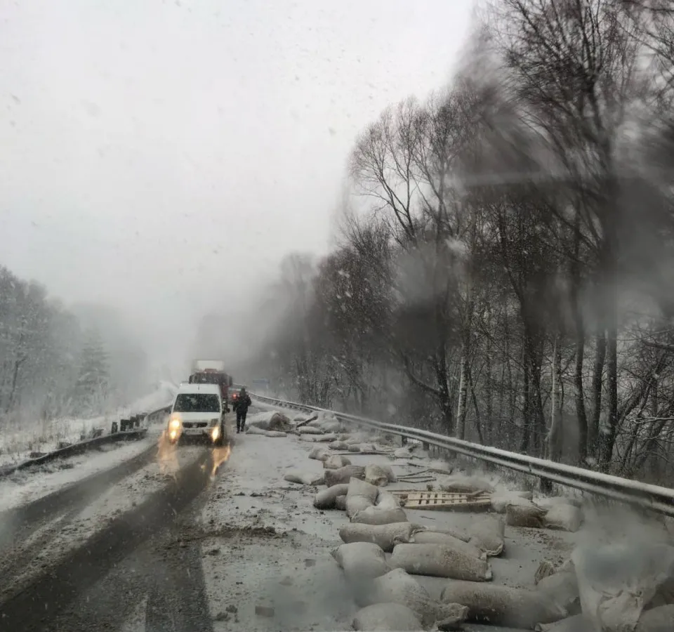 В Касимовском районе произошло ДТП: на дороге лежат мешки с грузом