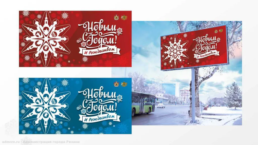 Ранее горожанам представили концепты баннеров и наклеек для оформления городских пространств. На синем и красном фоне будет изображена снежинка, включающая в себя изображения достопримечательностей города. Новогодний символ можно будет встретить на остановках, рекламных плакатах, защитных ограждениях и наклейках в общественном транспорте.