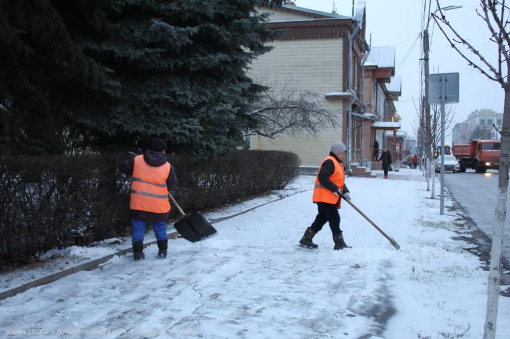 На улицы города выехали снегоуборочные машины, а рабочие вручную рассыпают пескосоляную смесь на тротуары. Состояние и уборка улиц города контролируется по камерам видеонаблюдения.