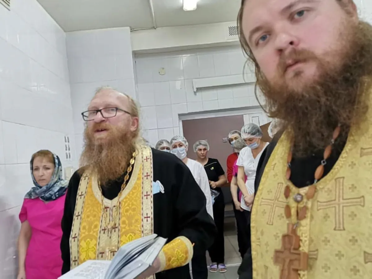 Вместе со своим коллегой, Сергием Лазаревым, Дмитрий освятил «зеленую» и «красную» зону, а также причастил всех желающих.