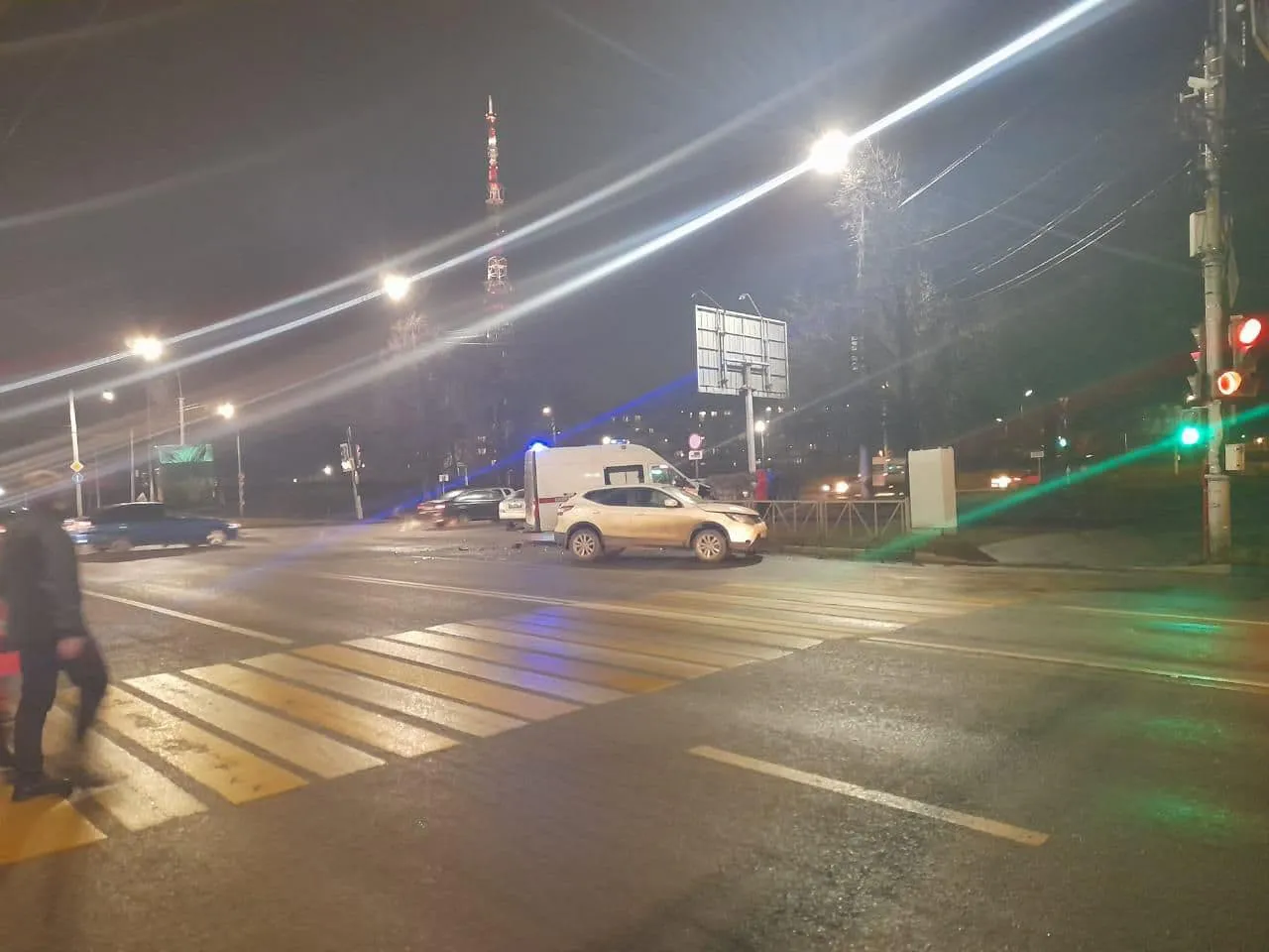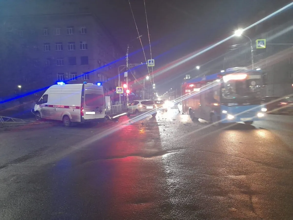 На улице Циолковского напротив дома 24 на регулируемом перекрестке столкнулись автомобиль скорой помощи и "Ниссан Кашкай". В результате аварии пострадала 30-летняя пассажирка "скорой".