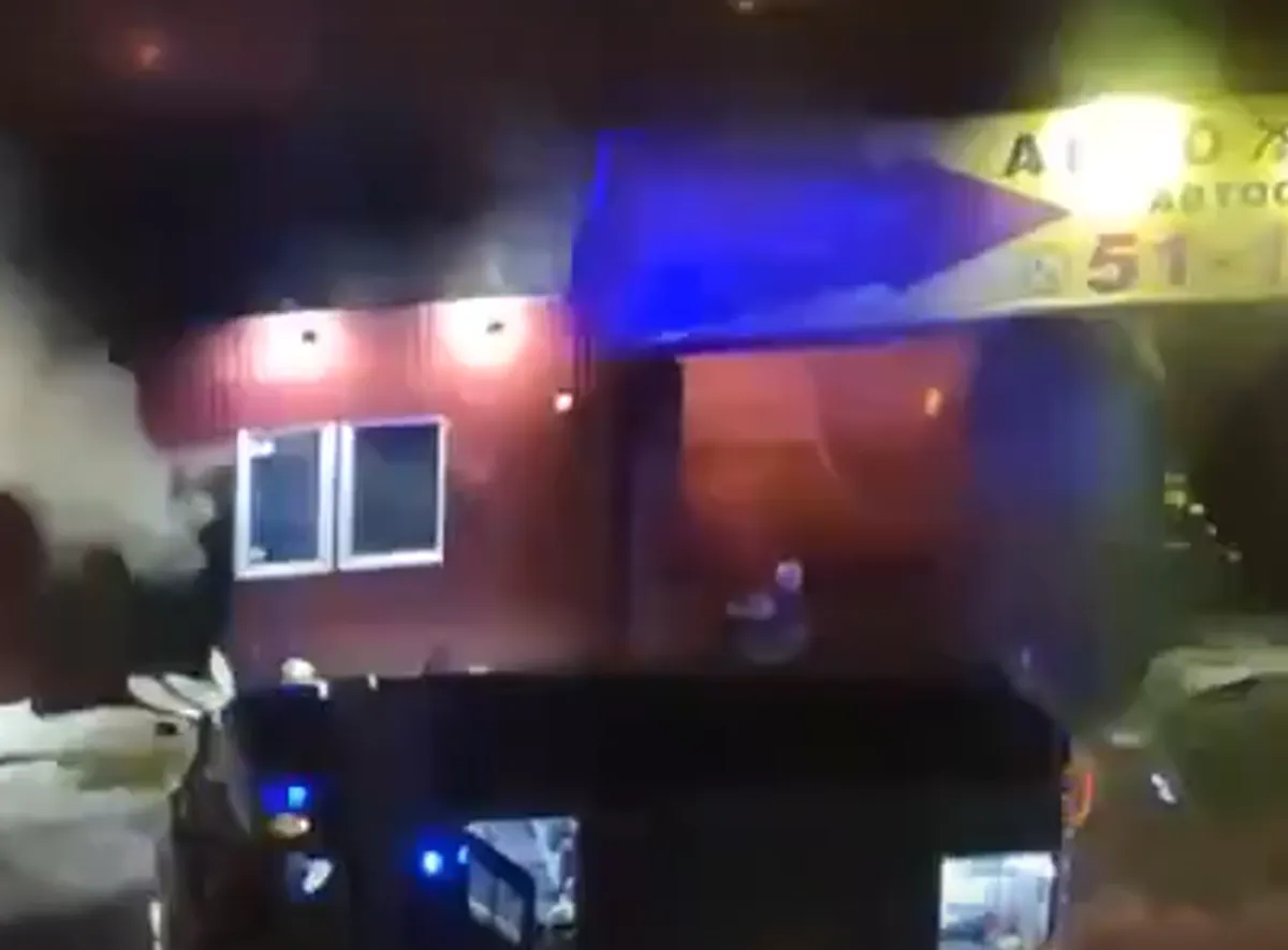 На Бирюзова загорелся автосервис: видео с места пожара