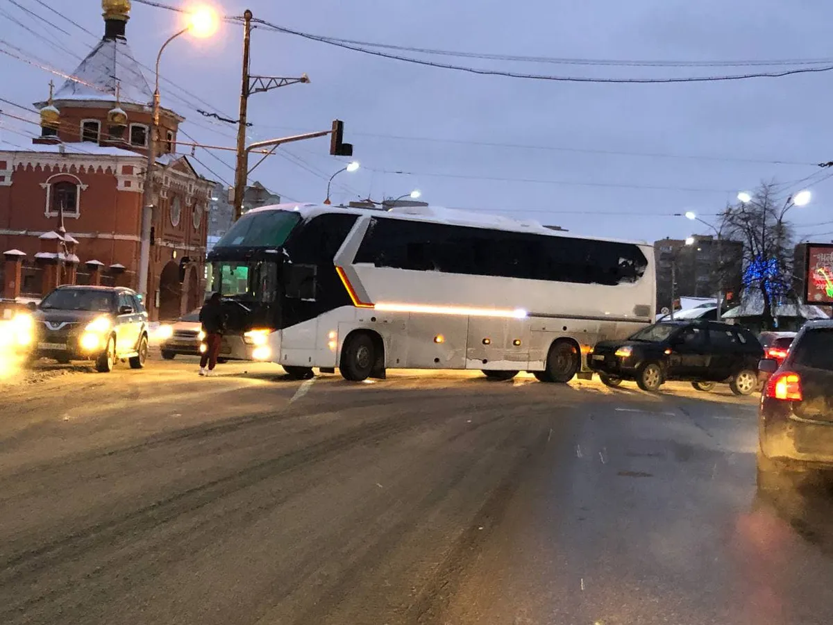 По предварительной информации, автобус подрезал иномарку. На дороге образовалась пробка.