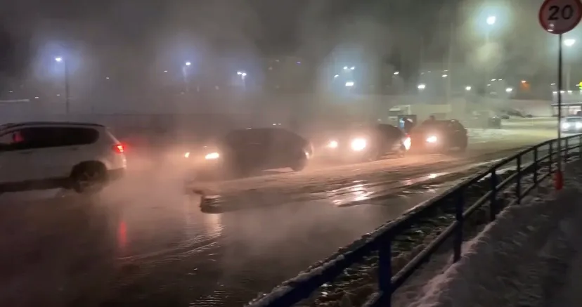 Во вторник, 28 декабря, на Касимовском шоссе у гипермаркета «Лента» затопило проезжую часть.