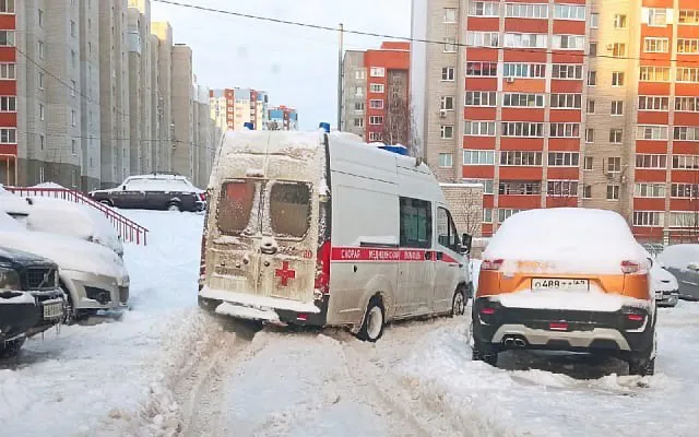 В социальных сетях рязанцы рассказали, что во дворе дома №90 корпус 1 на Большой улице в снегу застряла машина скорой помощи: