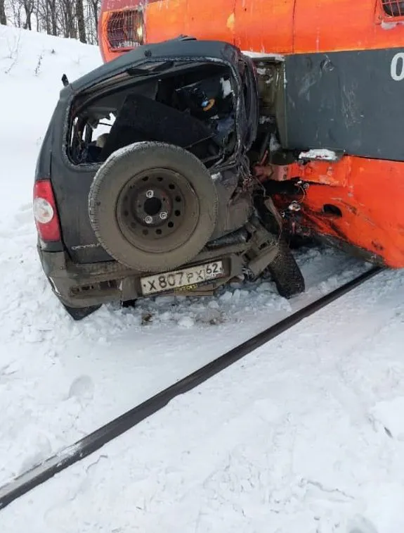 Электричка врезалась в Шевроле Нива в Рязанской области