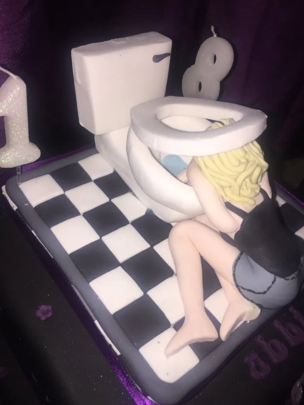 В США девушке подарили торт в виде молодой особы, которую тошнит в унитаз