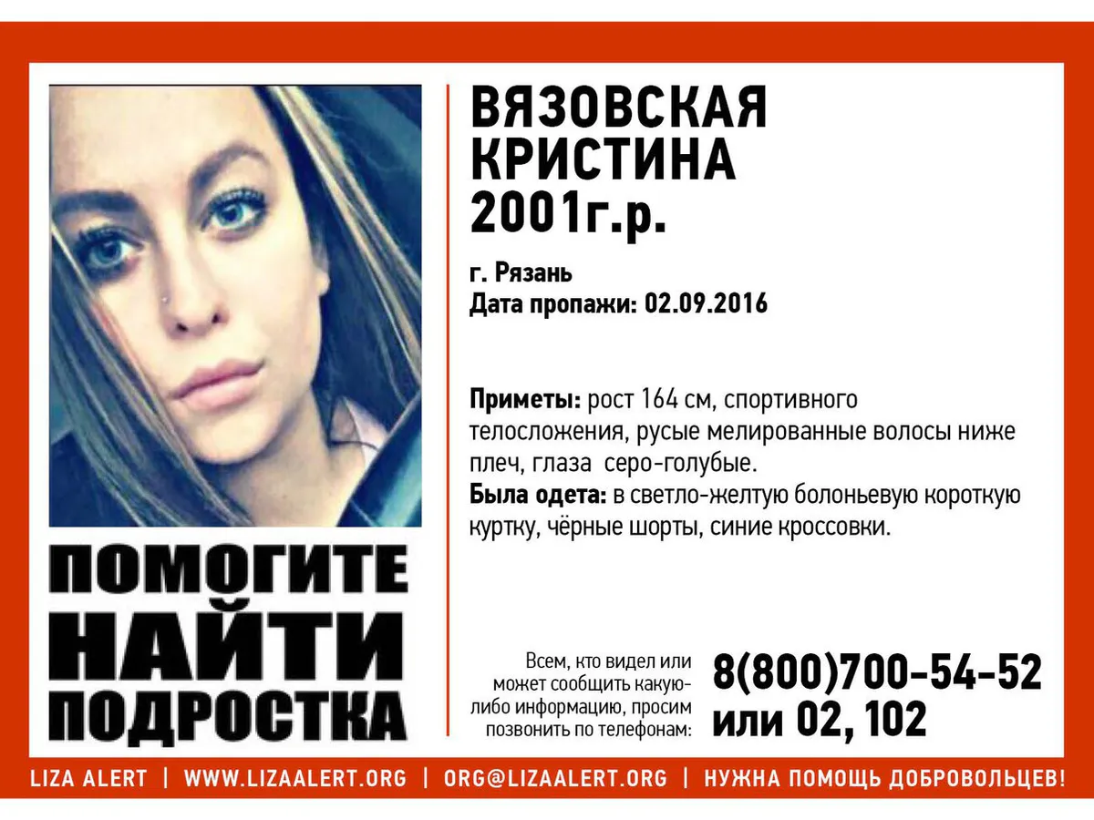 В эту пятницу Кристина Вязовская не вернулась домой после школы, до сих пор ее местанахождение неизвестно.