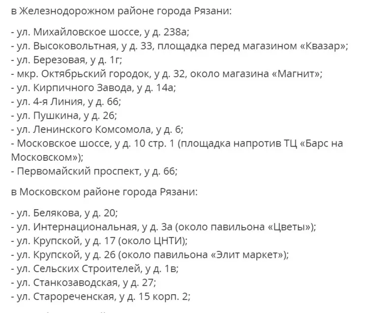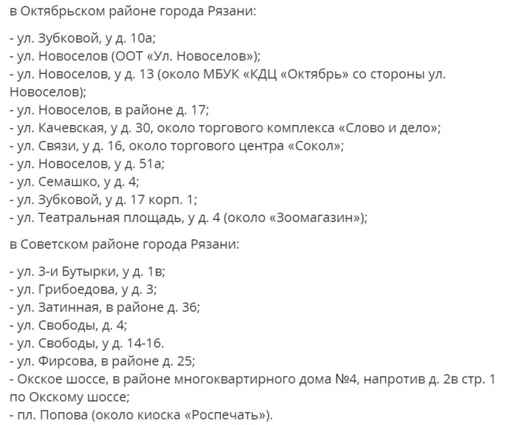 Стоит отметить, что торговые точки разместят во всех четырех городских районах: Октябрьском, Советском, Железнодорожном и Московском. При этом продать продукцию на эксклюзивных правах смогут лишь сельскохозяйственные производители Рязанской области.