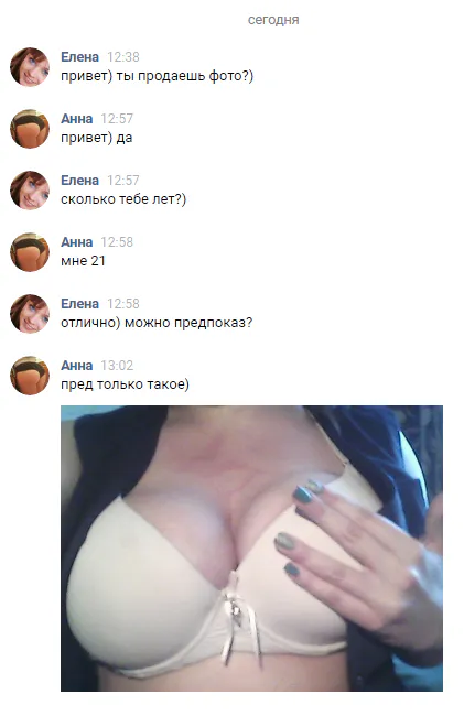 Кроме того, девушки боятся конкуренции. Пытаясь завязать разговор с другими особами, мы писали, что хотим продавать интимные фотографии, но не знаем, с чего начинать. После этого девушки начинали грубить и в нецензурной форме говорить куда, по их мнению, мы должны отправиться с такими вопросами.