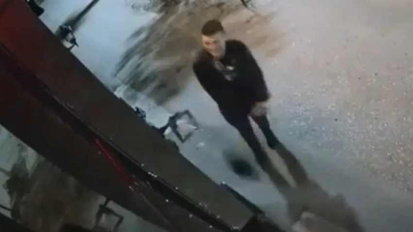 На кадрах видно, что непонятно агрессивный поступок совершил молодой человек. Он уже подошел к зданию вооружившись посторонним предметом. Не постеснялся злоумышленник и случайного свидетеля, который проходил в метре от здания.
