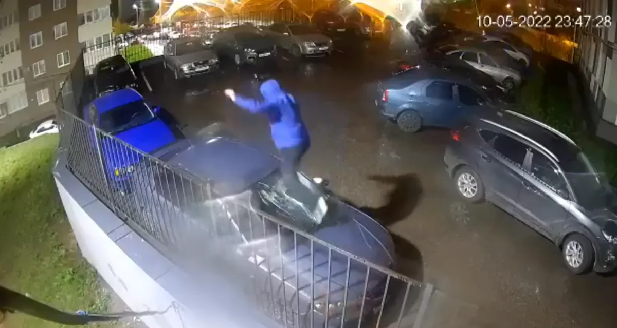 По словам автора поста, в ЖК, расположенном на улице Шевченко, 10 мая 2022 года около двенадцати часов ночи вандал повредил автомобиль, припаркованный на автостоянке. Момент правонарушения попал на камеру видеонаблюдения.