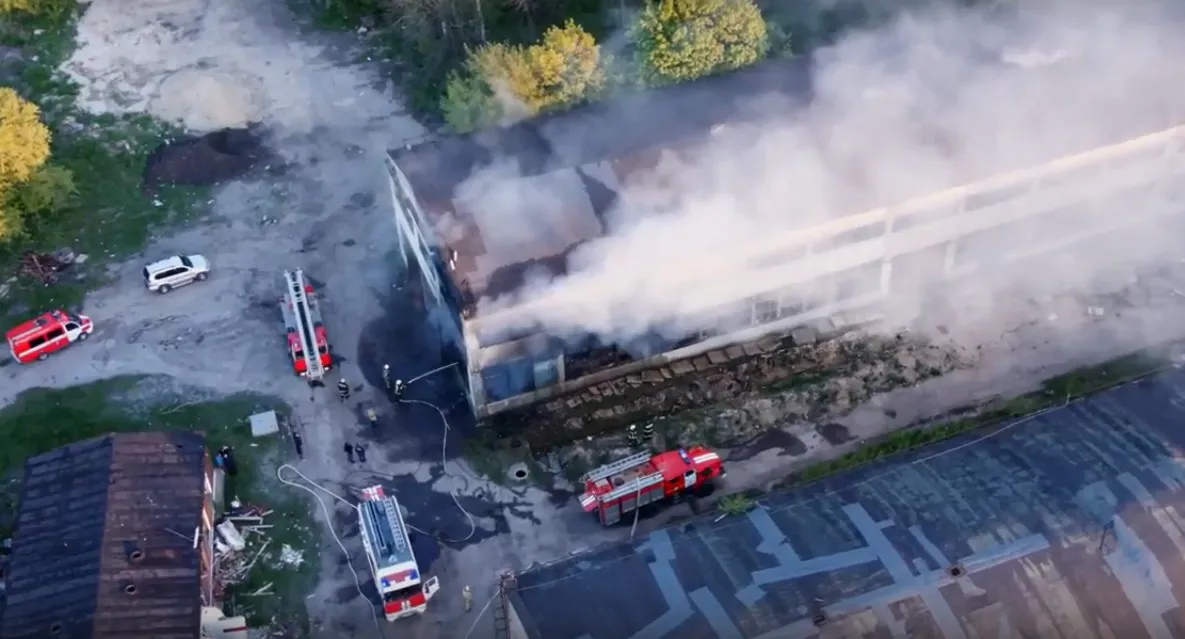 В Рязани пожар в здании речного порта попал на видео